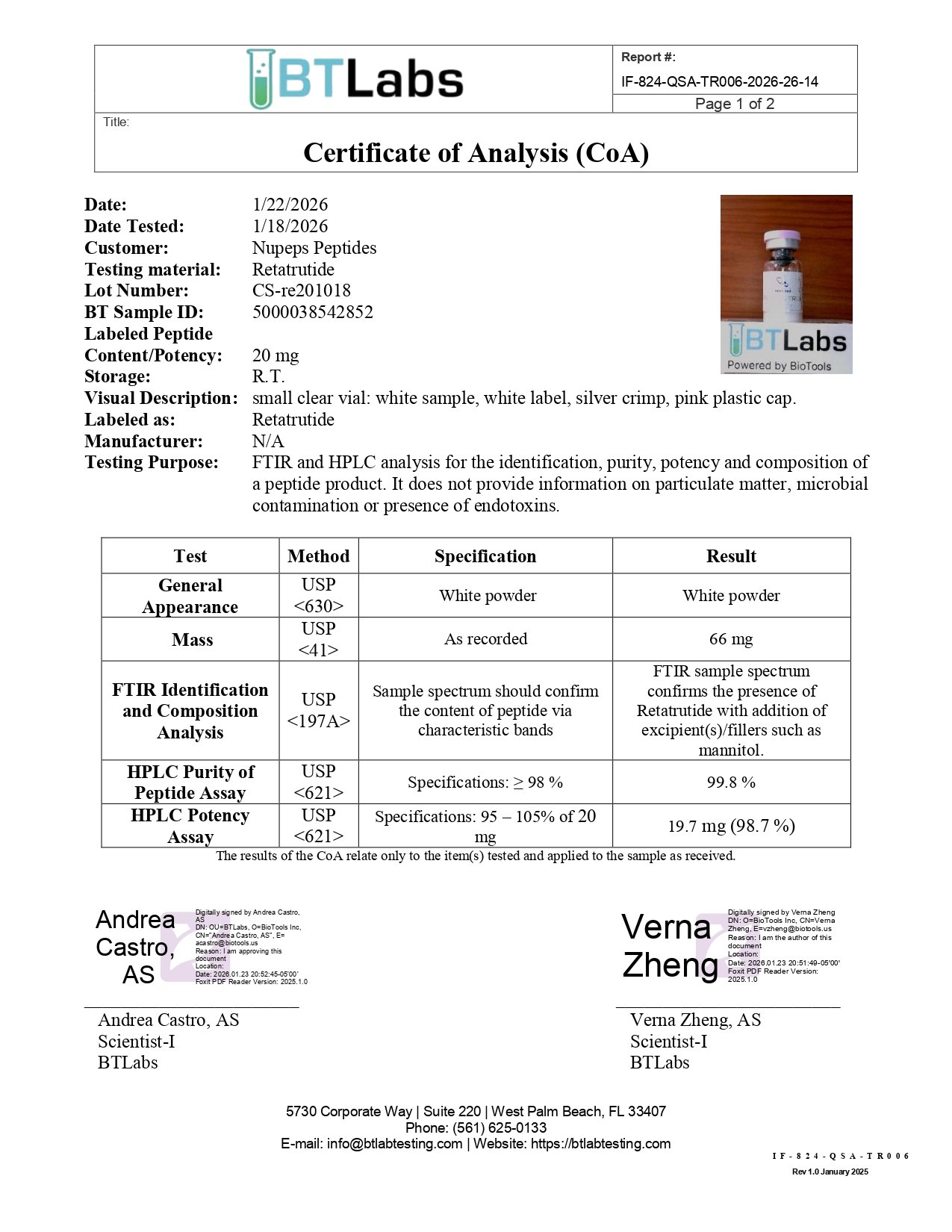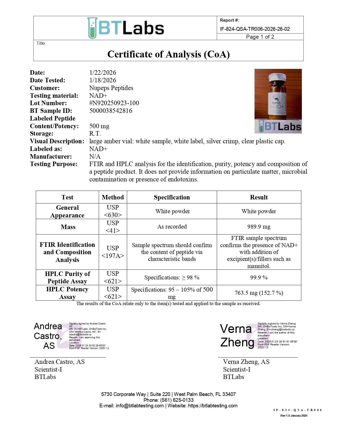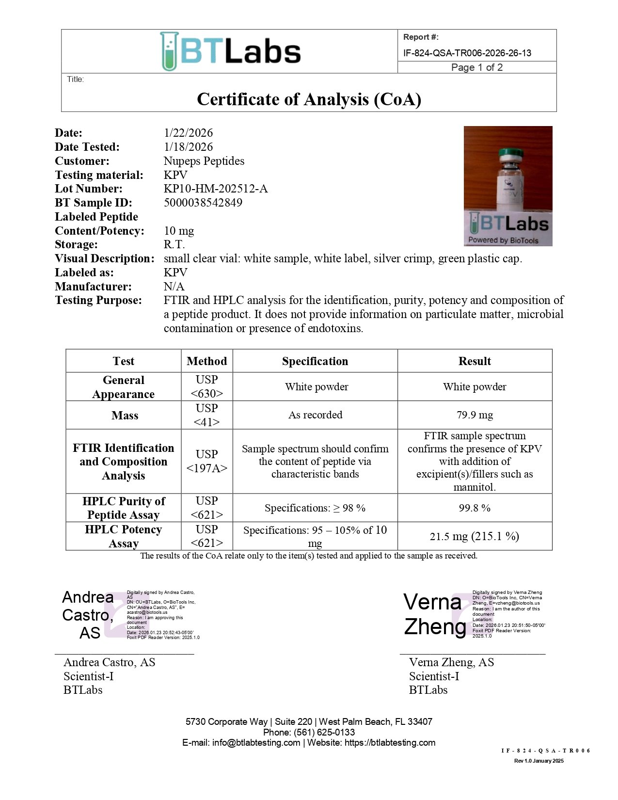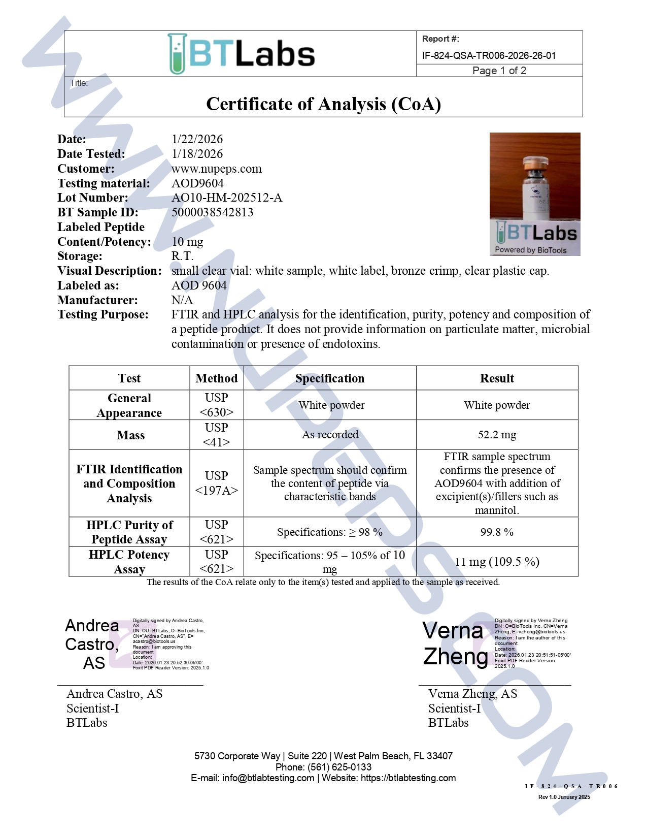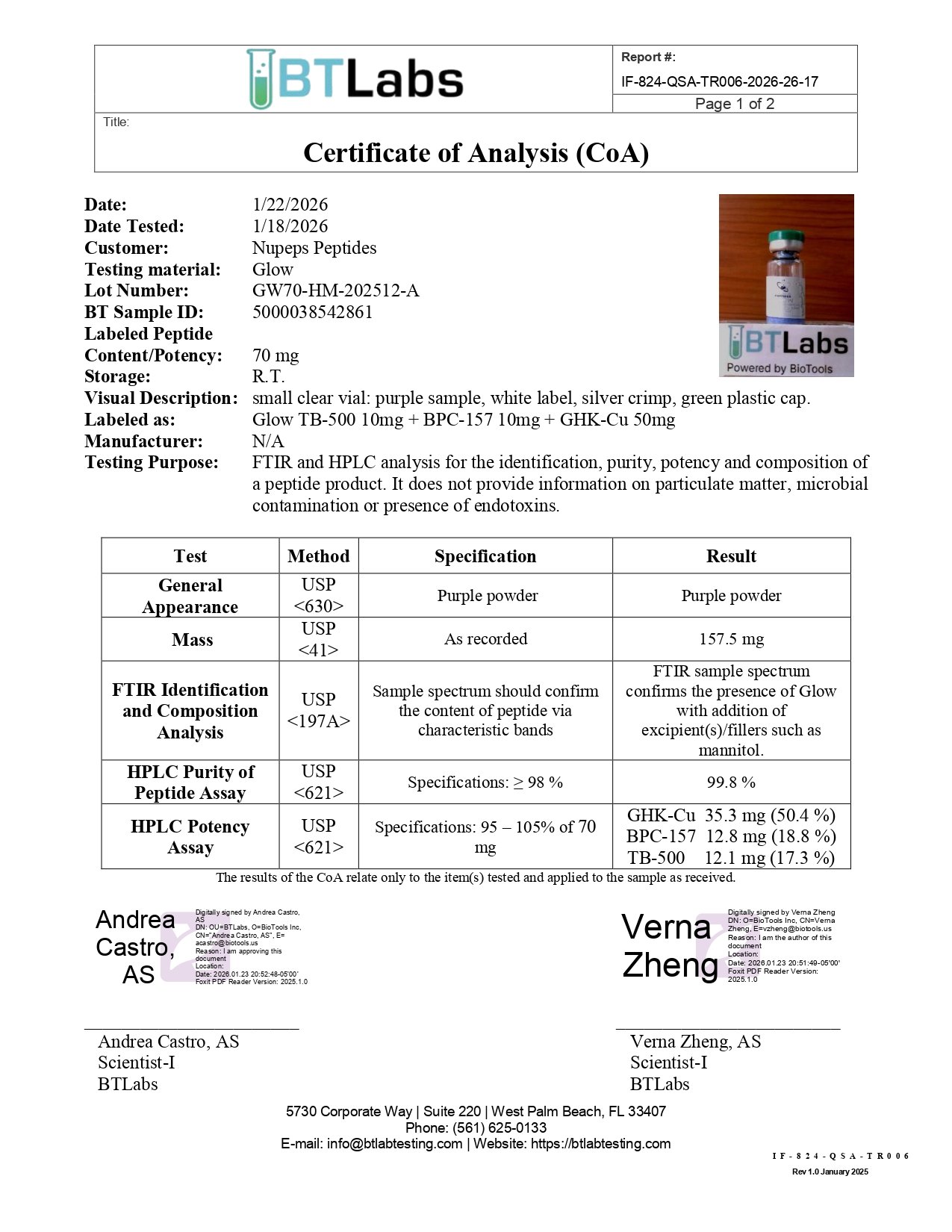 NUPEPS Peptides COA